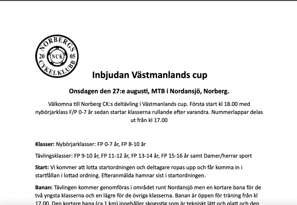 Måndagar sker träningen i Ramnäs med samling i Cykelparken kl 17:45.